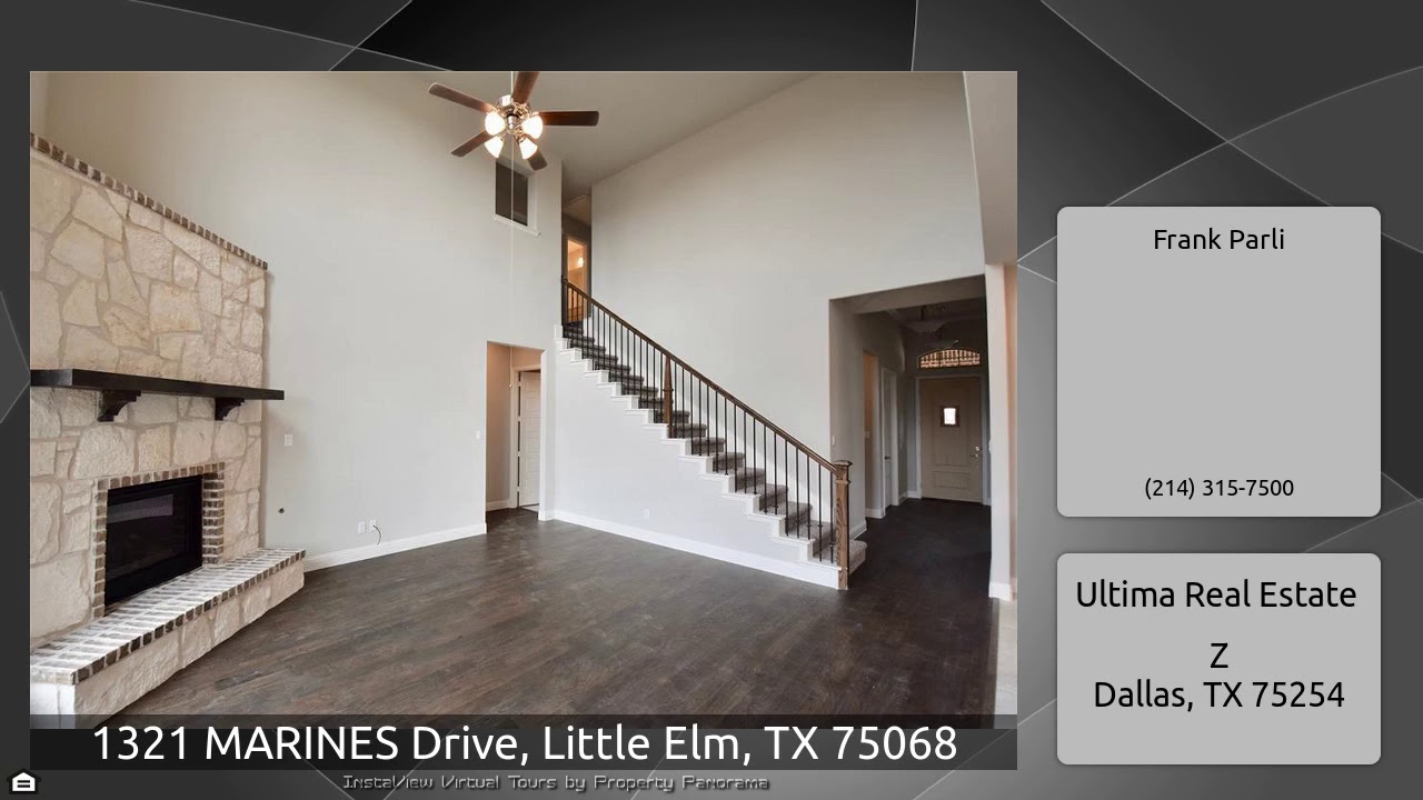 The Virtual Tour for the property at 1321 MARINES Drive, Little Elm, TX 75068 listed for $369,000: Other homes for sale by Frank Parli of Ultima Real Estate: $10K PRICE DROP! BRAND NEW in VALENCIA ON THE LAKE! Beautiful Country French design. Elegant front door leads to beautiful Atrium. Engineered WOOD FLOORS IN FAMILY, STUDY, AND F. DINING! Study with French Doors OR Guest BR down. Large F. Dining. Huge Master Down featuring a bay window. Large 2-story Family Room. Great Kitchen with Custom Cabinetry and Granite tops. 3 bedrooms and GAME up. Master Bath has custom cabinetry with Granite …