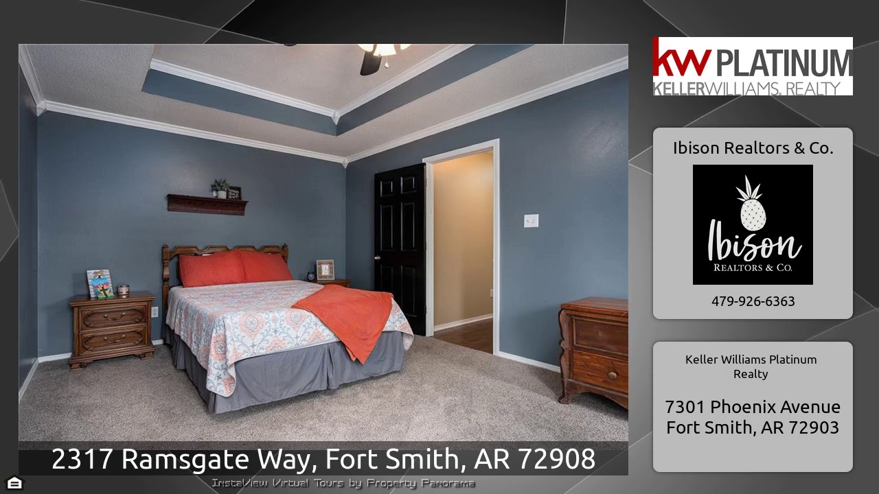 The Virtual Tour for the property at 2317 Ramsgate Way, Fort Smith, AR 72908 listed for $224,900: Other homes for sale by Ibison Realtors & Co. of Keller Williams Platinum Realty: Lovely french country style home offering 4 bedrooms, formal dining room, home office or flex room and great open concept living room and kitchen. Quartz countertops, painted cabinets and stainless appliances. Plenty of dining space in the breakfast nook or bar as well. Extra storage room in garage, pantry closet and nice sized garage. All bedrooms up with fresh paint and tons of storage. You'll love the …