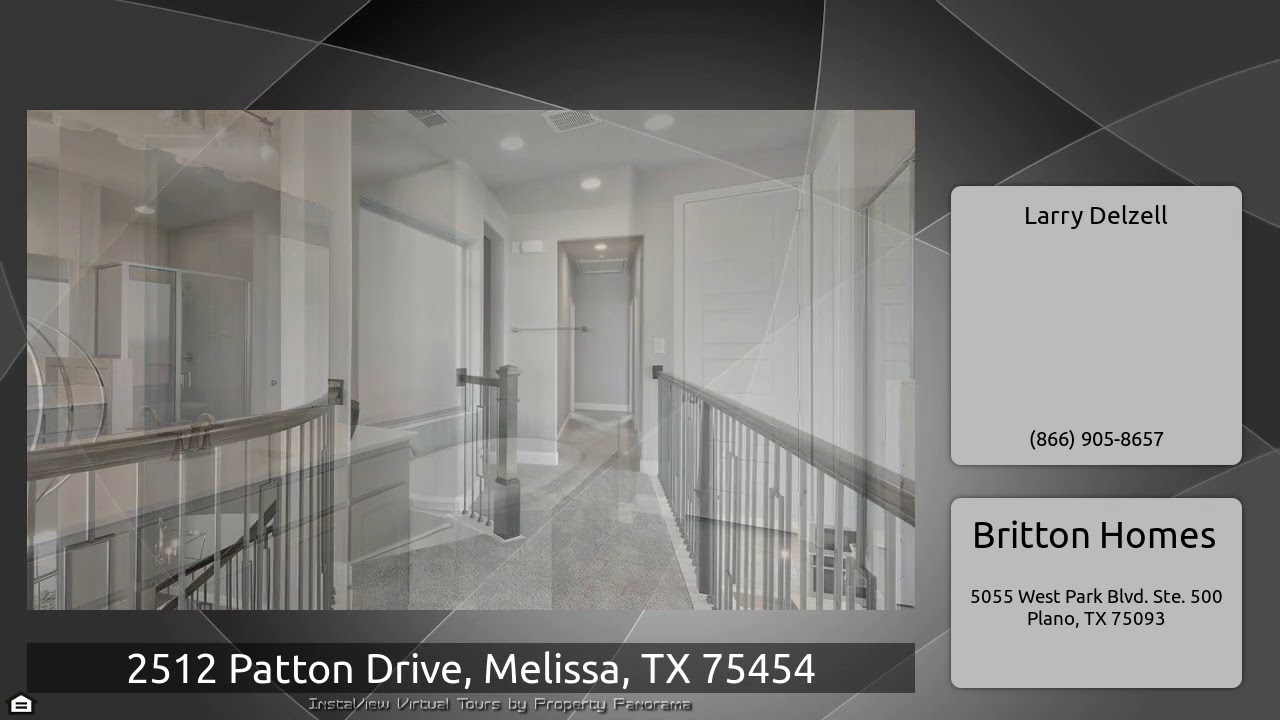 The Virtual Tour for the property at 2512 Patton Drive, Melissa, TX 75454 listed for $529,900: Other homes for sale by Larry Delzell of Britton Homes: PERRY HOMES NEW CONSTRUCTION READY FOR MOVE-IN! Beautiful, 2-story home on a private home site that backs up to a greenspace and walking distance to the school. Library with French doors and formal dining room. Circular staircase highlights the two-story entry. Two-story family room with ceramic tile floor features a wall of windows and a corner cast stone fireplace. Kitchen features walk-in pantry and Butler's pantry. Spacious master suite …