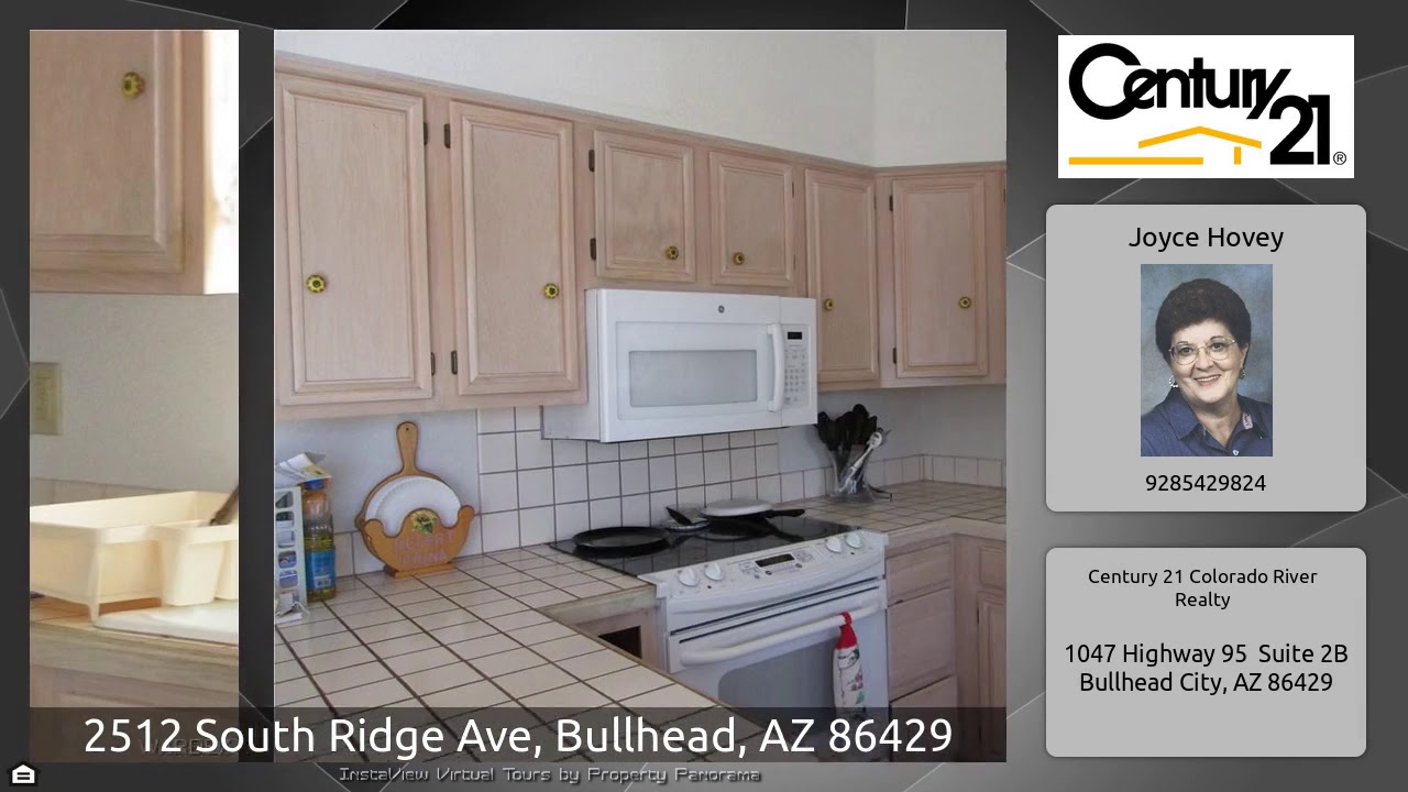 The Virtual Tour for the property at 2512 South Ridge Ave, Bullhead, AZ 86429 listed for $229,000: Other homes for sale by Joyce Hovey of Century 21 Colorado River Realty: This lovely 3 bedroom home is located on the 'perfect' lot with outstanding mountain views. Home faces north with RV or boat parking on the east, block wall surrounding the back yard with privacy and lots of room for enjoyment. Lovely master suite with French doors provides walk in shower, walk in closet, dual sinks, linen closet & more. 2 spacious guest rooms, open living area with fireplace, rear kitchen & dining area and …