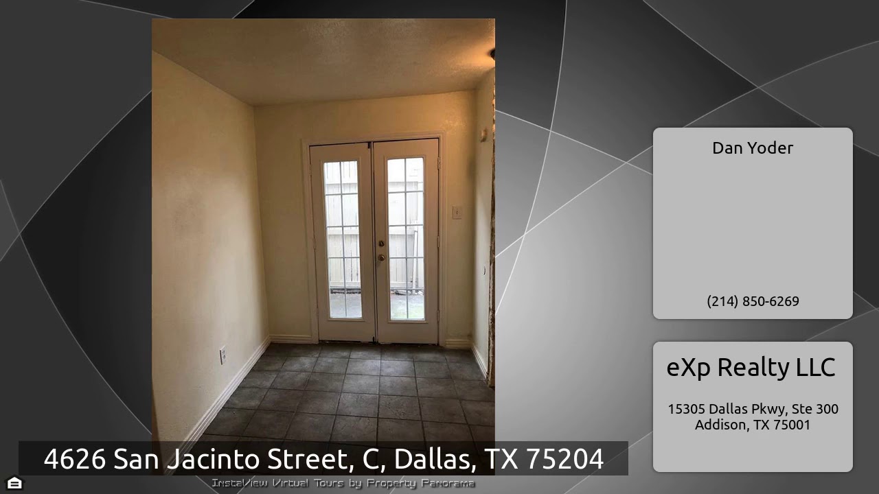 The Virtual Tour for the property at 4626 San Jacinto Street, C, Dallas, TX 75204 listed for $1,970: Other homes for sale by Dan Yoder of eXp Realty LLC: This Recently Refreshed Unit Boasts No Carpeting. This Spacious Townhome Offers Two Full Two Upstairs Bedrooms With Walk-In Closets, Each With Its Own Full Bath And There Are Washer And Dryer Connections. The Downstairs Features A Full Living, Dining And Kitchen With Stove And Refrigerator And Contains An Oversized Living Room With A Fireplace Ans Has Double French Doors Leading To A Fenced Patio With A High Privacy Fence. Call Today To …