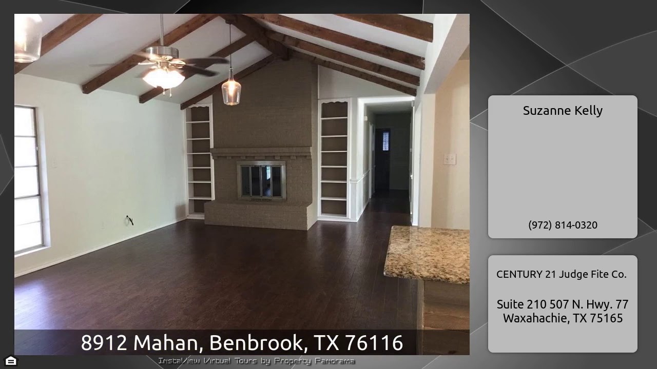 The Virtual Tour for the property at 8912 Mahan, Benbrook, TX 76116 listed for $229,500: Other homes for sale by Suzanne Kelly of CENTURY 21 Judge Fite Co.: Beautiful open concept with soaring beamed ceilings, built ins and awesome brick fireplace. Gorgeous kitchen with granite countertops, recent stainless appliances, large island overlooking family room. Flex room could be second living or formal dining. Four large bedrooms! Master suite with lovely updated master bath. French doors leading to large back yard. Perfect location in an established neighborhood. Listing agent is related to seller