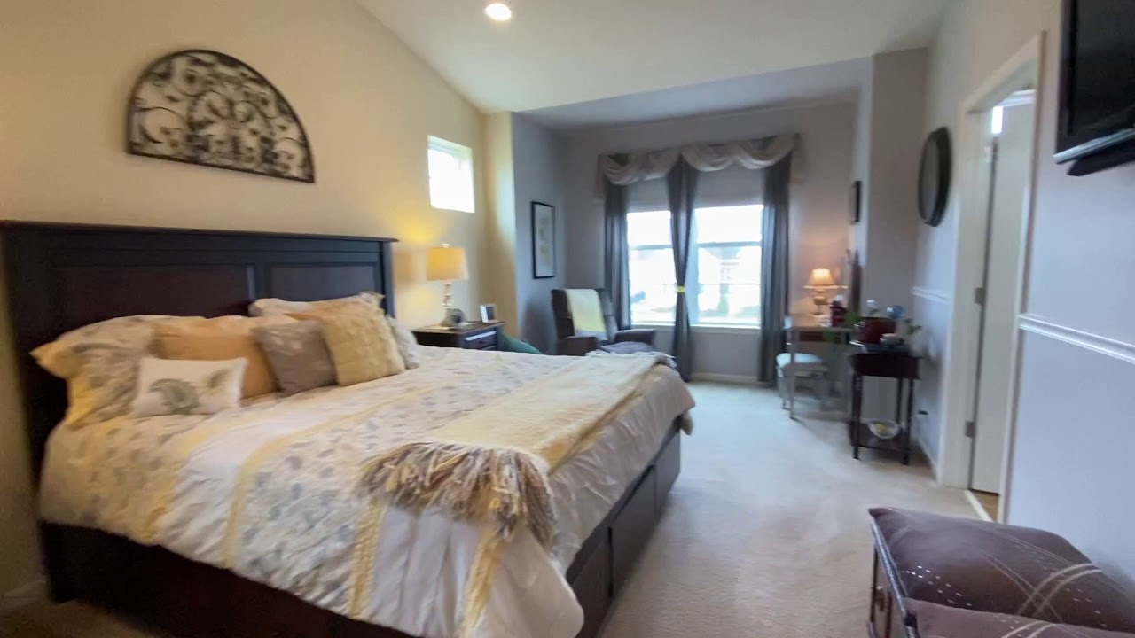 Welcome Home to this beautifully upgraded Ranch in Carillon at Cambridge Lakes! This absolutely stunning Palm Springs model is ready for you to call Home! The lush landscaping and the brick exterior with a wonderful covered front porch welcome you home from the moment you pull up! Inside, this home features gorgeous pristine hardwood floors throughout! Discover the wonderful den with French doors, large living and dining rooms with custom window treatments, neutral paint and custom trim! The stunning kitchen is upgraded with top-of-the-line white cabinetry with upper and lower crown molding, gorgeous quartz counters, a fabulous oversized center island with a prep sink, breakfast bar and ample counter space and storage! The large family room features a custom wall feature. The grand master suite has vaulted ceilings, custom lighting, a sitting nook, a large walk-in closet and a private bath with dual upgraded vanities and a large shower. Discover the FANTASTIC deep pour full English basement with a bathroom rough-in, lighting, storage and so much space! The amazing three-car garage is extra tall. The outdoors offers a beautiful paver stone patio, gorgeous landscaping, under deck storage and a fantastic location close to the clubhouse and amenities! PLEASE NOTE: 2019 TAXES WILL REFLECT A REDUCTION IN ASSESSMENT AND EXPECTED TO BE REDUCED BY $2401 A YEAR!