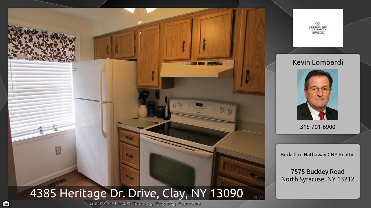 The Virtual Tour for the property at 4385 Heritage Dr. Drive, Clay, NY 13090 listed for $109,900: Other homes for sale by Kevin Lombardi of Berkshire Hathaway CNY Realty: Shows Fabulous "3 Level Transitional Townhome With Open Floorplan!! Vaulted Ceilings!! Plush Carpet! Gorgeous Private 239' Fenced Treed Lot!! Enjoy The Benefits Of Home Ownership With "No" Hoa'S!! Ceramic Foyer!Large Laundry With Storage Room Behind Garage!! 2Nd Floor Has Greatroom With Pergo Floors!! French Door To Large Deck And Large Landscaped Backyard!! Dining Area With Breakfast Bar Pass Through To Kitchen!! Pantry!! …