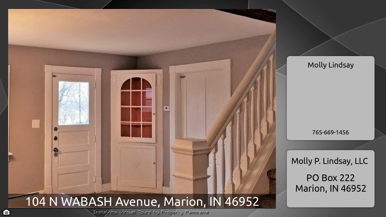 The Virtual Tour for the property at 104 N WABASH Avenue, Marion, IN 46952 listed for $99,900: Other homes for sale by Molly Lindsay of Molly P. Lindsay, LLC: BEAUTIFUL 4 bedroom, 1.5 bathroom, 2,630 sf home with plenty of turn of the century charm you would expect. Grand foyer entry coming in from huge enclosed porch, French doors to oversized living room with gas log fireplace, open staircase and hardwood floors. Other main floor rooms include dining room, updated kitchen and appliances, breakfast nook, laundry room, updated half bath, large pantry closet and access to basement storage …
