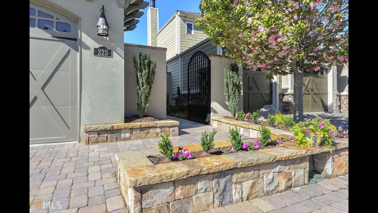 Fabulous courtyard home, masterfully designed to maximize outdoor & indoor living space. Beautiful gated garden entrance leading to the front door. Features include an open concept floor plan, lots of natural light, rich finishes throughout, transom windows, scraped hardwood floor, 12′ ceiling w/triple crown molding, wood plantation shutters, 12″ baseboards, French doors, custom closets, granite countertops throughout & upscale lighting. Spacious great room & kitchen combo, skylight over entertainment style island, 5 burner stove with double oven, wine cooler, pantry with built-in shelving, stainless appliances, upgraded glass front cabinets, gorgeous dining area with wall of windows overlooking stunning, private courtyard with large outdoor flagstone fireplace, gas logs & heated Pebble Tec inground pool/hot tub with elegant sheet waterfall & total privacy. Spacious master suite with architectural ceiling, master bath boasts large stepless shower, garden tub, double vanity & large walk-in closet. There are two bedrooms upstairs with French doors to the balcony. There is also a separate courtyard guest suite/home office/ art studio and full bath. Home features a 3 car garage with epoxy finish flooring & wainscoting, irrigation system, 2 Navien tankless water heaters and Icynene insulation for low energy bills and extreme comfort. Amenities include Country Club quality Clubhouse, fitness center, indoor & outdoor fireplace, billiards, poker tables, catering kitchen, huge swimming pool, pickleball courts & bocce ball. HOA maintains front yard lawn & landscaping. Upscale gated community minutes to charming Downtown Woodstock, shopping, restaurants, Woofstock Dog Park, Greenprints Trail System & I-575. This home is truly exceptional!