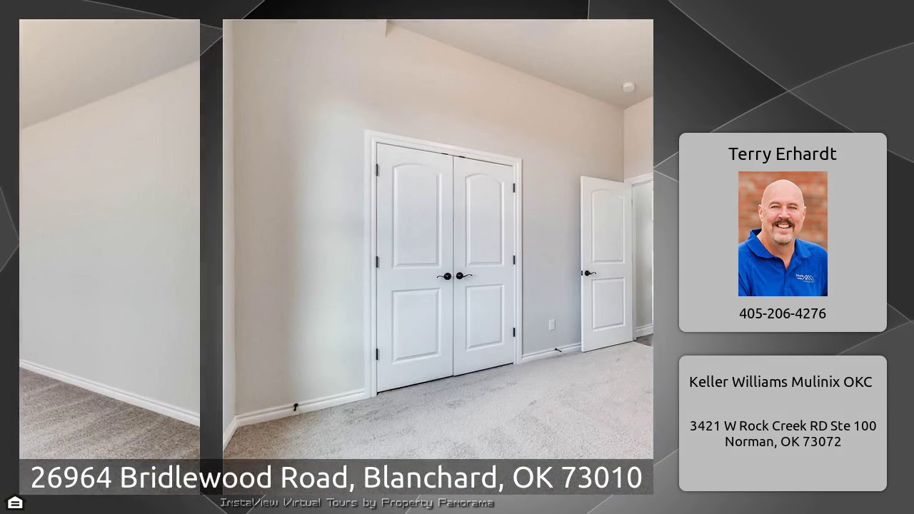 The Virtual Tour for the property at 26964 Bridlewood Road, Blanchard, OK 73010 listed for $228,500: Other homes for sale by Terry Erhardt of Keller Williams Mulinix OKC: PROFESSIONAL PHOTOS COMING 1/24. Country living at its best! Your new home in Blanchard's new Bridlewood Ranch addition. 3 Bed/2 Bath PLUS office (could be 4th bedroom!). Beautiful french style front door with sidelights entry welcomes you into this open living/dining/kitchen space. Living area with fireplace and wood look tile floors. Kitchen has quartz counters, custom backsplash, under cabinet lighting, and stainless …