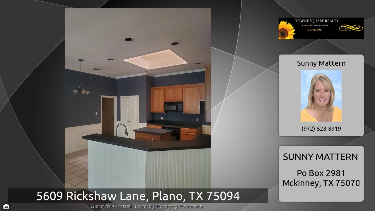 The Virtual Tour for the property at 5609 Rickshaw Lane, Plano, TX 75094 listed for $1,850: Other homes for sale by Sunny Mattern of SUNNY MATTERN: Nice single story 3 bedroom home. Formal study with french doors and formal dining or living room upon entry. Skylight in kitchen, breakfast bar overlooking main living room. Master bath has his and hers vanities, jetted tub and separate shower. Nicely landscaped backyard.