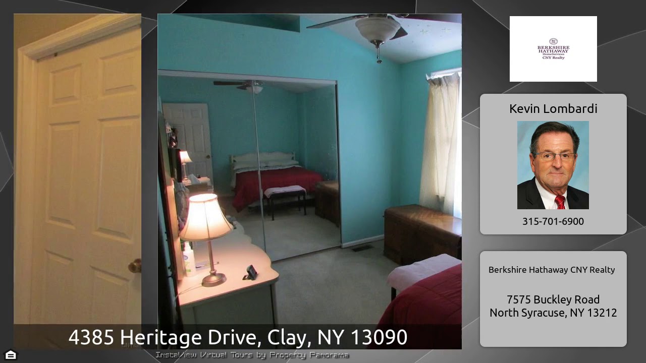 The Virtual Tour for the property at 4385 Heritage Drive, Clay, NY 13090 listed for $109,900: Other homes for sale by Kevin Lombardi of Berkshire Hathaway CNY Realty: Shows Fabulous "3 Level Transitional Townhome With Open Floorplan!! Vaulted Ceilings!! Plush Carpet! Gorgeous Private 239' Fenced Treed Lot!! Enjoy The Benefits Of Home Ownership With "No" Hoa'S!! Ceramic Foyer!Large Laundry With Storage Room Behind Garage!! 2Nd Floor Has Greatroom With Pergo Floors!! French Door To Large Deck And Large Landscaped Backyard!! Dining Area With Breakfast Bar Pass Through To Kitchen!! Pantry!! 3Rd …