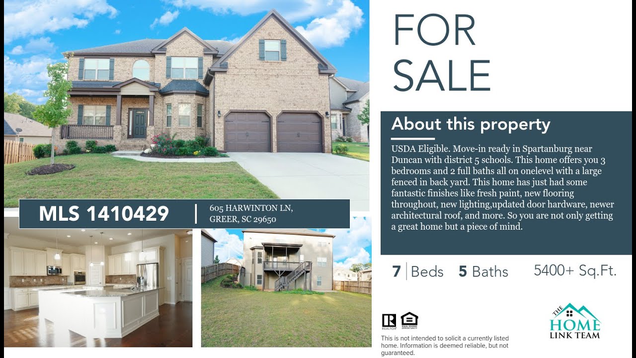 What a location in the Riverside area. Where you get the best of schools, convenience, shopping, and much more. This stunning home sits on a large lot with a fully finished basement in the new Westhaven community. Nestled in a cul-de-sac street with a fully fenced in backyard, it’s perfect for an active family. If you love the outdoors, you are in for a treat. The deck is covered and oversize. There are stairs that lead down to the yard to a rustic stamped patio that is just as large. Perfect for having guests over and having some fun. Inside there is space for everyone and every activity with seven bedrooms and five bathrooms. There is a private office with French doors, separate dining room, and living room that opens to the kitchen. The kitchen is a true inspiration to anyone who likes to cook or entertain with gas stove, double ovens, large island, and an abundance of countertop space. Having some guests over? You can get them situated in the secluded bedroom on the 1st floor with a full bath or two more bedrooms and a full bathroom with a kitchenette in the basement. There is nothing that feels tight or cramped in the design of this home with 10 ft ceilings downstairs and vaulted ceilings on the 2nd-floor event the basement has taller than average ceilings. There’s a bonus room upstairs with French doors, perfect for movie night. There are four bedrooms upstairs, including the large owner’s suite complemented by a lovely bathroom with double sinks, granite counters, garden tub, and a fully tiled shower. The large walk-in closet has built-in cabinets for extra storage. The basement is almost like having a whole other home. There are two large living rooms, a kitchenette, two bedrooms, a full bath, and a vanity. This is a walkout basement as well as offering access from inside and out. While there are many homes to choose from, you will have a hard time finding one with this location, lot, space, and open floor plan. To top it all off you are only 2 miles from GSP International Airport. Schedule your showing today or view a walk-through video on YouTube.