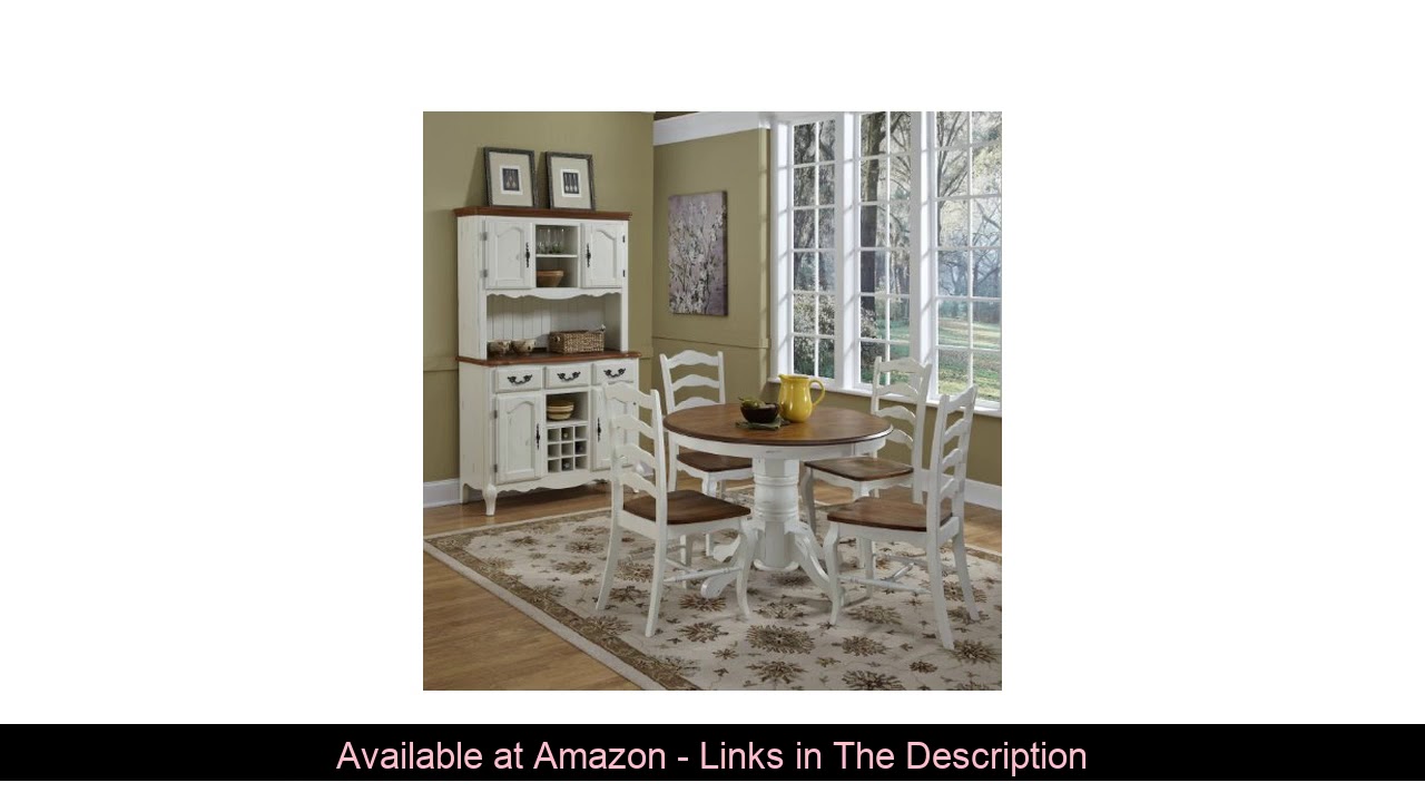 ⇉ French Countryside Oak/White 42 Round Pedestal Dining Table with 4 Chairs by Home Styles #HomeStyles