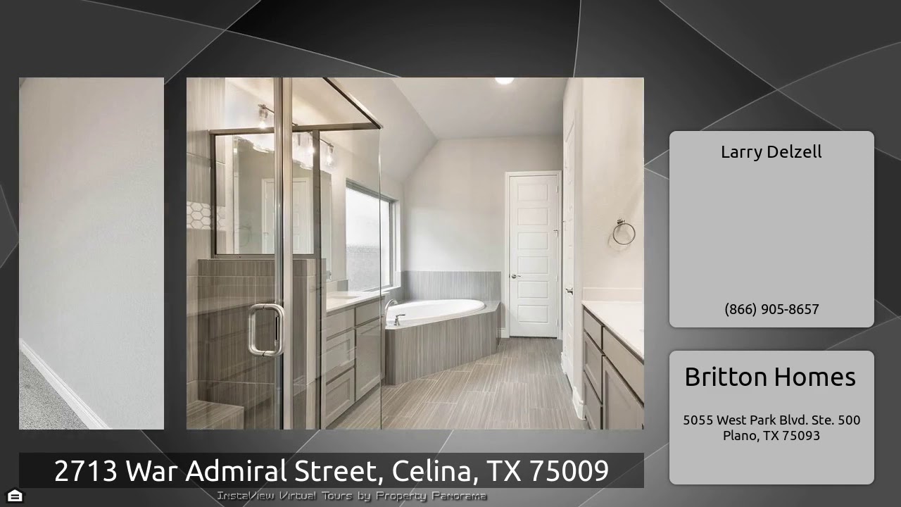 The Virtual Tour for the property at 2713 War Admiral Street, Celina, TX 75009 listed for $459,900: Other homes for sale by Larry Delzell of Britton Homes: PERRY HOMES NEW CONSTRUCTION READY FOR MOVE-IN! Extended entry with 13-foot ceiling. Library with French doors. Formal dining room. Open family room with a wall of windows opens to the kitchen and morning area. Kitchen features a large island with built-in seating space and a walk-in pantry. Private master suite with a wall of windows. Master bath with double doors features dual vanities, linen closet, corner garden tub, a separate …