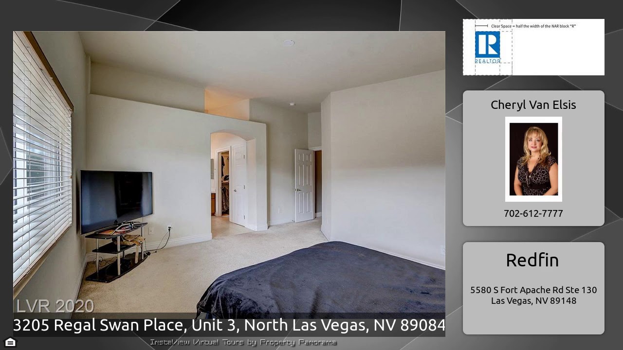 The Virtual Tour for the property at 3205 Regal Swan Place, Unit 3, North Las Vegas, NV 89084 listed for $235,000: Other homes for sale by Cheryl Van Elsis of Redfin: THERE'S NO PLACE LIKE HOME! Fantastic floor plan in Gated Community*Beautiful Warm Wood Look Plank Tile Floor highlight Expansive kitchen w/tons of Counters & Breakfast Bar*Generous Great Room*French Doors to Private Back Yard*Separate Dining Area*1/2 bath/ Laundry Room Down*Direct access to 2 Car Garage*Separate Master Suite allows for Relaxing in Privacy*Community Park, Pool & Spa*Amazing Aliante Amenities-Shopping, Dining, …