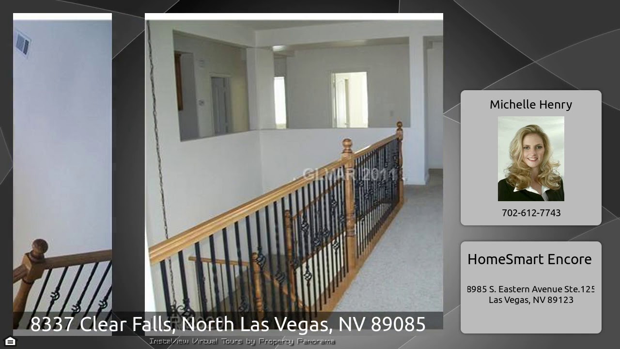 The Virtual Tour for the property at 8337 Clear Falls, North Las Vegas, NV 89085 listed for $389,000: Other homes for sale by Michelle Henry of HomeSmart Encore: Great floorplan in gated community! Large kitchen with granite island, lots of cabinet space opens to family room with fireplace. Separate family room and dining area with french doors that open to pavered patio. Master bedroom separate from other rooms. Large backyard and all appliances. Community pool and clubhouse, exercise room and parks!