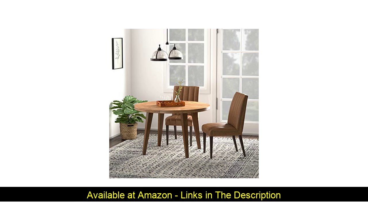 An Amazon Brand – These modern dining chairs feature cognac-colored top grain leather upholstered in a ribbed design. A distinctive trim of brass nailheads embellishes the sides of these impressive chairs.