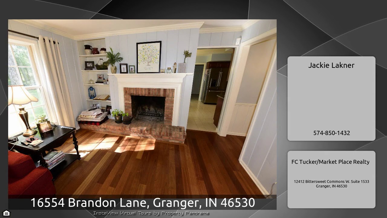 The Virtual Tour for the property at 16554 Brandon Lane, Granger, IN 46530 listed for $265,000: Other homes for sale by Jackie Lakner of FC Tucker/Market Place Realty: It will be easy to picture yourself living in this elegant home! The setting is gorgeous and the home is updated and move in ready! So much is new. You'll love the granite and custom cabinetry in the kitchen, french doors, oversized dining room, 3/4" thick Brazilian cherry flooring, beautifully tiled master en suite with barn door entry, built in shelving in office, main floor laundry and fabulous yard- what a rare find! All …