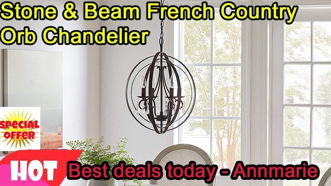 Stone & Beam French Country Orb Crystal Ceiling Chandelier With Light Bulbs – 18 x 18 x 21 Inches, Oil Rubbed Bronze