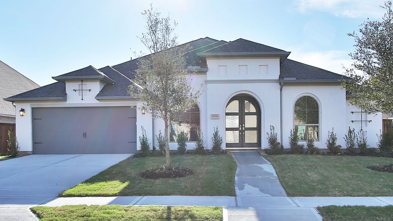 Welcome to Meridiana in Iowa Colony, Texas. This Waterfront lot offers 3322 sq. ft with four bedrooms, three full bathrooms and one half bathroom. The entry features double mahogany glass doors, a 12 ft. coffered ceiling and a stunning chandelier. The library frames the entry with French doors and hardwood floors. Formal dining room opens to extended entry with hardwood floors, and a modern chandelier. Family room with wall of windows and wood mantel fireplace opens to island kitchen with walk-in pantry. The kitchen features a wrap around bar with built in seating space, and a centered island. Game room with French doors just off morning area. The guest suite offers complete privacy with a full bathroom and a walk-in closet. Private master suite includes a stunning curved wall of windows. Dual vanities, garden tub, separate glass-enclosed shower and two walk-in closets in master bath. High ceilings, large windows and abundant closet space add to this spacious four-bedroom home. Extended covered patio and wrought iron fencing and a gorgeous waterfront view in backyard. Mud room off three-car garage. #perryhomes #meridiana