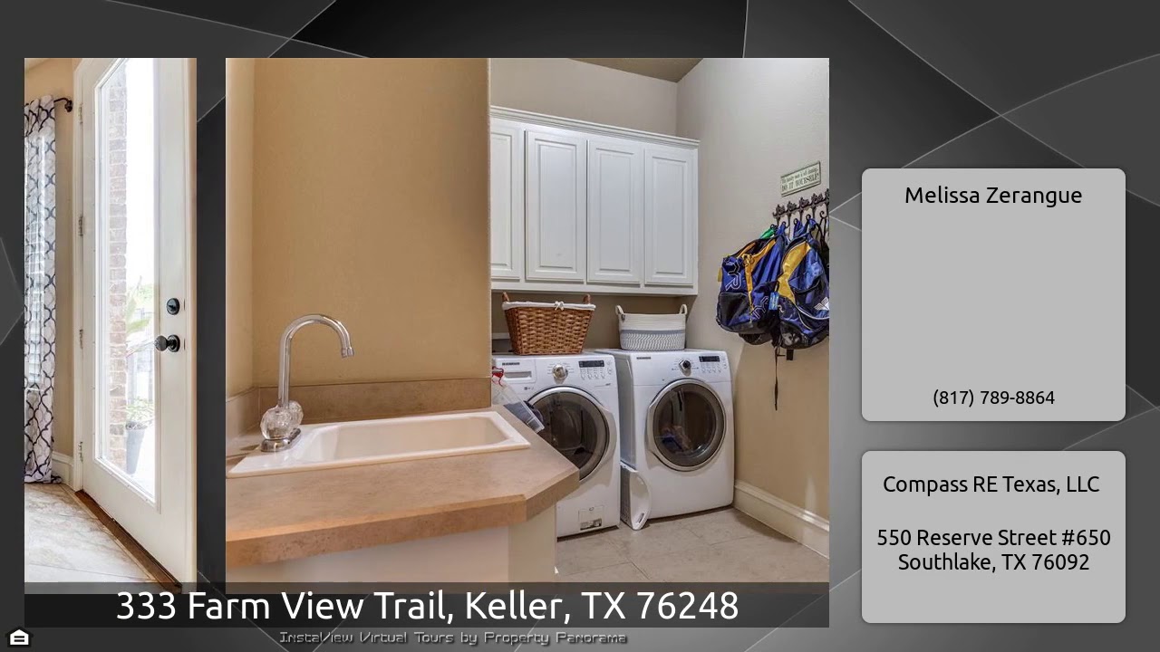 The Virtual Tour for the property at 333 Farm View Trail, Keller, TX 76248 listed for $599,000: Other homes for sale by Melissa Zerangue of Compass RE Texas, LLC: Impeccably maintained executive home set on quiet street with water views. Downstairs features soaring ceilings in foyer, French doors to home office, formal dining room and bright open concept kitchen-family room with generous cabinetry, island and built-ins. Enjoy beautiful sunsets in the backyard! Area for grill with stone bar, spa and large lap pool and grassy area overlooking the neighborhood pond and adjacent farm. Finishing …