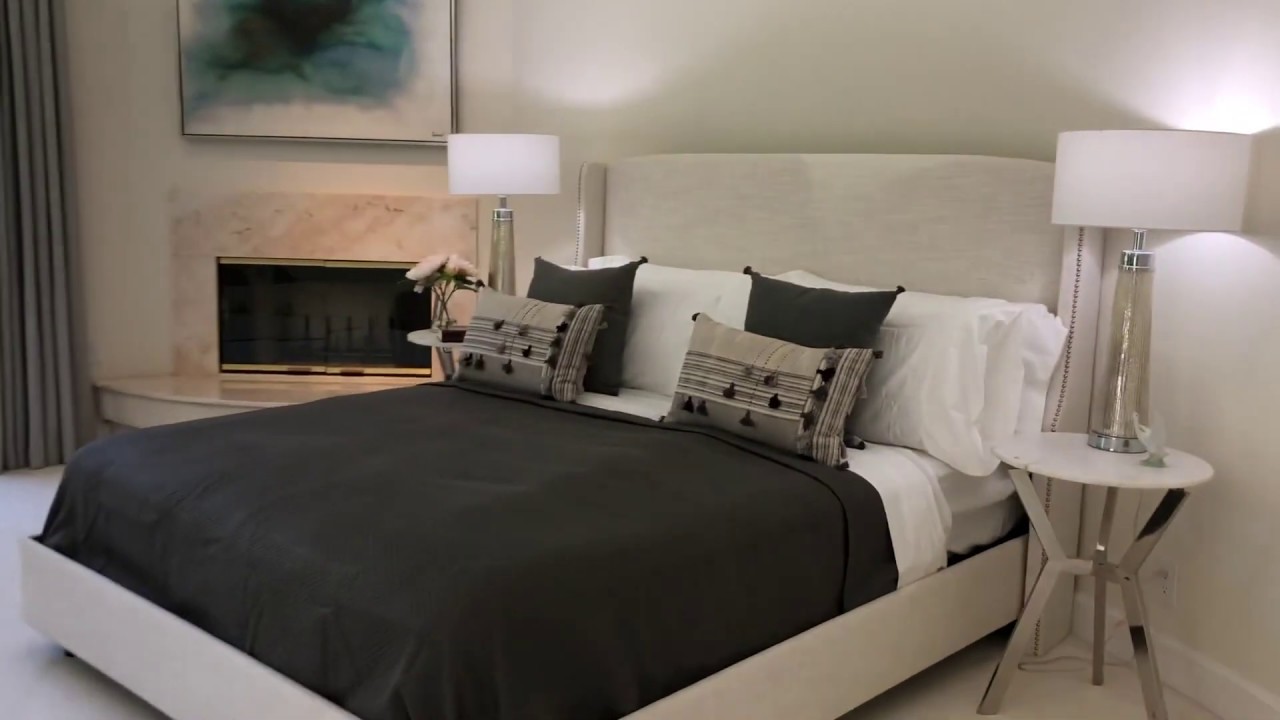 Approached by sweeping stone steps, the home’s upper level has generous living and dining spaces featuring French limestone flooring, multiple gas fireplaces and radiant floor heating, as well as a private master suite with spa-like bathroom and private garden terrace. A newly remodeled kitchen has top-of-the-line appliances and a breakfast room with direct access to the backyard featuring an al fresco dining terrace, level lawn and secret Mediterranean garden. The home’s lower level has three bedrooms, a media room with 110” projection screen, and a large slate pool deck with pool/spa combo and panoramic views.