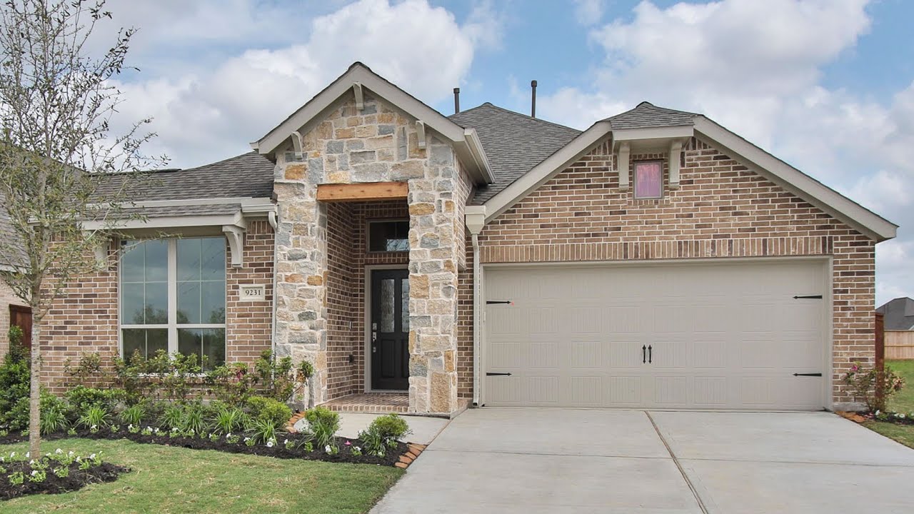 Meridiana is a new 3,000 acre community in Iowa Colony, Texas. This 2251 sq. ft. single story home offers three bedrooms and two full and one half bathrooms, it features a brick and stone exterior with a covered front porch. The Extended entry has 12-foot ceiling. Library with French doors and wood tile floors. Kitchen has an island with built-in seating space, and walk-in pantry. The open concept dining room and family room features gorgeous walls of windows with ceramic tile floor. Private master suite with wall of windows. Double door entry to master bath with garden tub, separate glass enclosed shower, dual vanities, and two walk-in closets. Secondary bedrooms with walk-in closets frame the front door entry. Mud room. Covered backyard patio. Three-car garage. #perryhomes #perryhomeshouston #meridiana