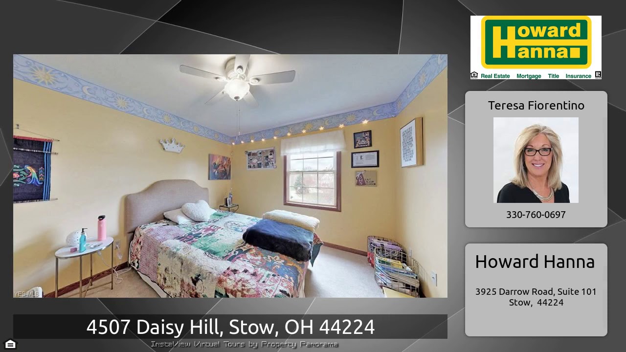 The Virtual Tour for the property at 4507 Daisy Hill, Stow, OH 44224 listed for $357,480: Other homes for sale by Teresa Fiorentino of Howard Hanna: Beautifully maintained colonial situated on a cul-de-sac lot in the highly desirable Eastwicke Farms neighborhood. This home offers a tremendous space. Walking up the sidewalk to the covered front porch welcomes you into the foyer graced with hardwood flooring. To the right of the foyer is the formal living room with glass French doors opening to the vaulted family room. To the left of the foyer is the formal dining room. The oversized kitchen …
