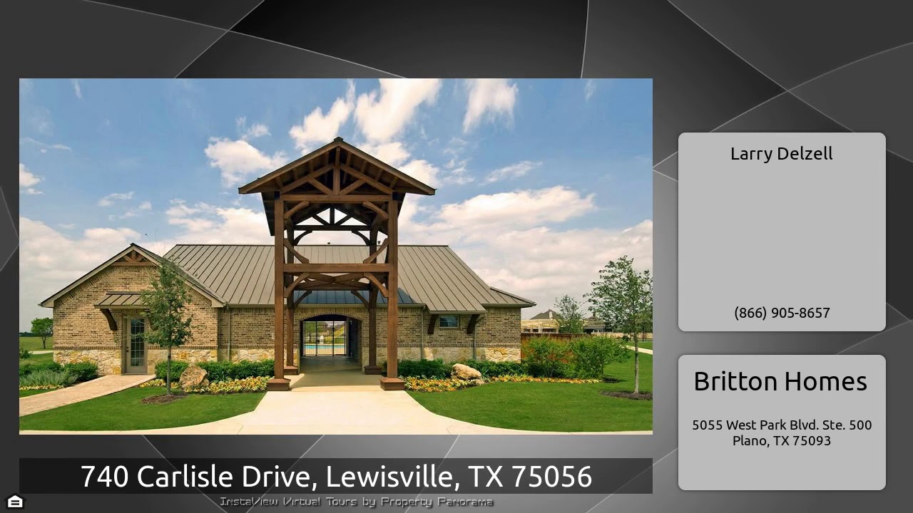 The Virtual Tour for the property at 740 Carlisle Drive, Lewisville, TX 75056 listed for $579,900: Other homes for sale by Larry Delzell of Britton Homes: BRITTON HOMES NEW CONSTRUCTION! Short stroll from greenbelt, pool and amenity center. Entry welcomes with 12-foot ceilings. Hardwood floors throughout. Library with French doors. Guest suite with a full bath and a large walk-in closet. Kitchen features abundant counter space, gas cooking, a large corner pantry and an island with built-in seating space. Dining area flows to open family room with a corner fireplace and three large windows. …