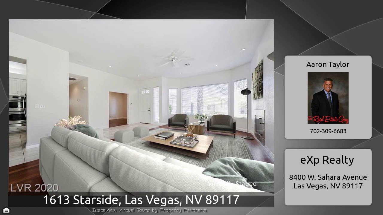 The Virtual Tour for the property at 1613 Starside, Las Vegas, NV 89117 listed for $439,000: Other homes for sale by Aaron Taylor of eXp Realty: Charming single-story in Canyon Gate, a guard-gated golf community. Freshly painted home w/hardwood flooring in the living, dining & family room. Tile in the kitchen & hallways. 2 sets of French doors open up to backyard patio for easy indoor/outdoor living. Master w/French doors that open to the backyard along w/a built-out walk-in closet. Master bath has separate shower & tub, & dual sinks. Kitchen w/SS appliances & beautiful quartz countertops