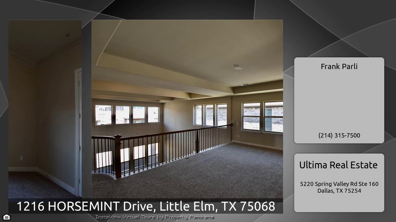 The Virtual Tour for the property at 1216 HORSEMINT Drive, Little Elm, TX 75068 listed for $429,000: Other homes for sale by Frank Parli of Ultima Real Estate: BRAND NEW DESIGN IN FRISCO HILLS SOUTH FACING! FRISCO SCHOOLS!! Beautiful Old World design with stone accents.Custom front door leads to 2 story foyer. Engineered Hardwood ENTRY, STUDY, F. DINING, FAMILY! Study w French Doors, Impressive 2story F. Dining, Guest BR down, nice Kitchen with custom cabinetry and granite tops. Large 2 story Family, Great Master down with 12' ceiling and HUGE closet. 3 BR's, Game AND Media up. WHIRLPOOL SS …