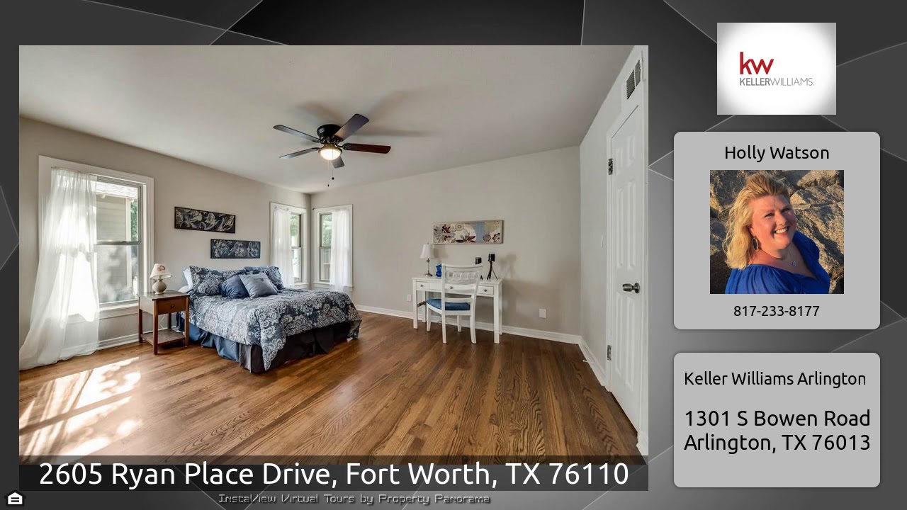 The Virtual Tour for the property at 2605 Ryan Place Drive, Fort Worth, TX 76110 listed for $333,900: Other homes for sale by Holly Watson of Keller Williams Arlington: This home can be found in prestigious Ryan Place, among all the cute bungalows. It has been completely updated while keeping the 1950’s charm. You will find an open concept in the kitchen-dining room, quartz countertops throughout the home, new cabinets, appliances and new windows. Beautiful original hardwood floors. Large master suite with high ceilings and a large second bedroom. A deck, just outside of the master french …