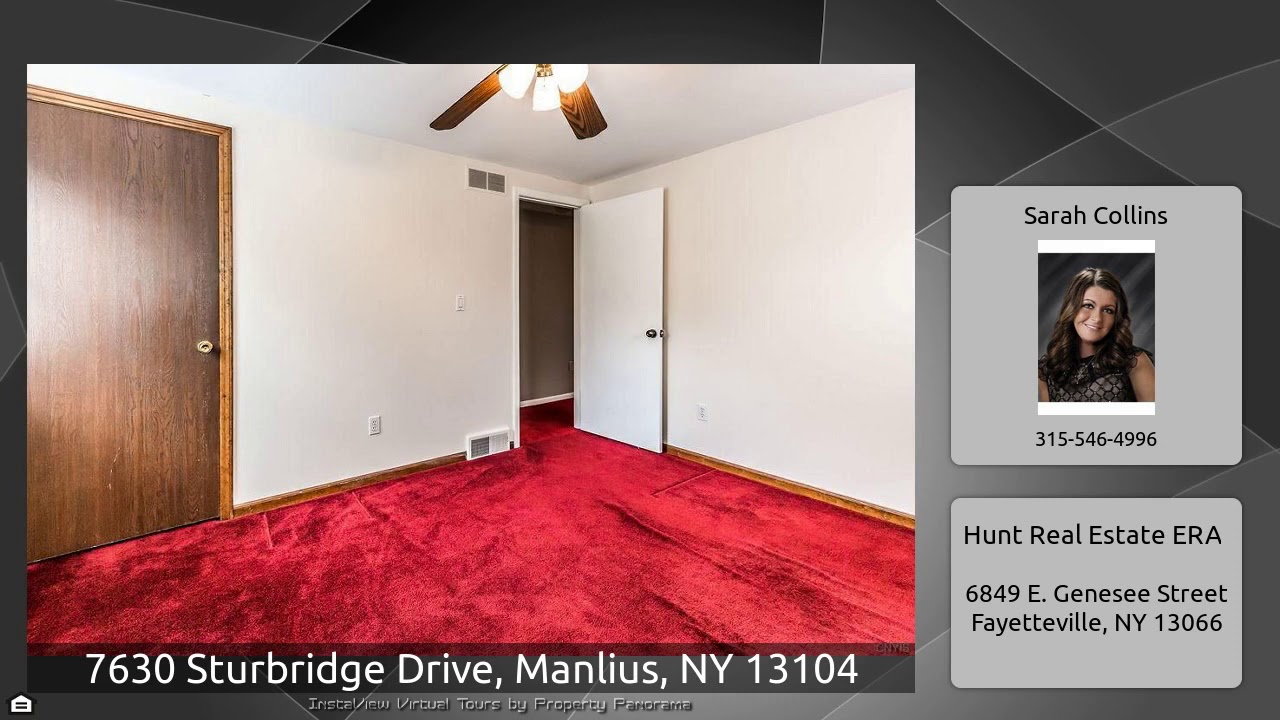 The Virtual Tour for the property at 7630 Sturbridge Drive, Manlius, NY 13104 listed for $249,900: Other homes for sale by Sarah Collins of Hunt Real Estate ERA: Fantastic 4 Bedroom, 2.5 bath center hall colonial in Manlius awaits a new owner! There is so much to love about this beautiful home! Over sized Living Room with gorgeous bay window is situated at the front of the home & offers privacy with beautiful french doors. This space would be ideal as an additional family room, music room or home office! Enjoy your meals in the spacious dining room that includes hardwood flooring & plenty of …