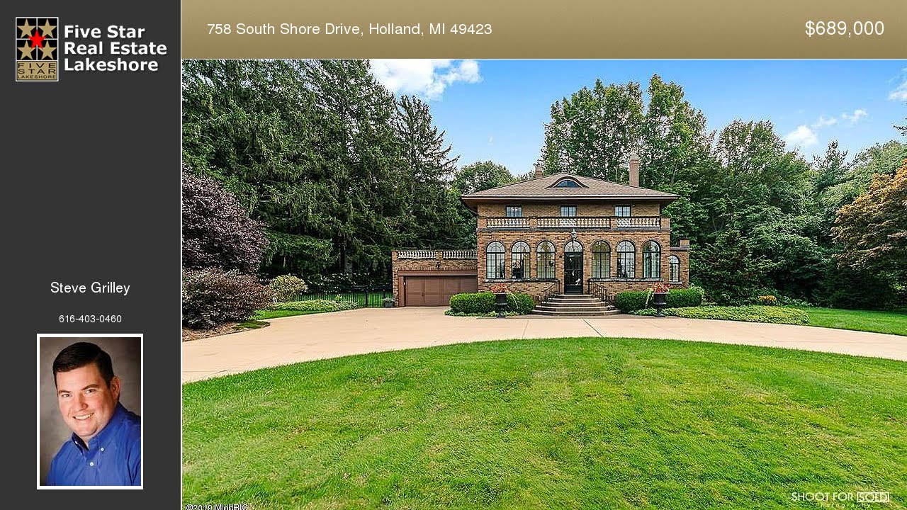 758 South Shore Drive Holland Michigan Homes for Sale | www.fivestarlakeshore.com | Steve Grilley with Five Star Real Estate Lakeshore | See full property details at | This historic home was completed in 1926 for the Dorian family. Arriving in Holland from France with some magnificent pieces that youll still find in the home today. Built in the style of a French 17th century Manor House with smooth and textured wet plaster walls, gorgeous hand laid tiles, and exquisite crown molding throughout the first floor and master bedroom. This home has been lovingly cared for by only four families for over 90 years. Entering from the front porch into a majestic foyer youll find an elegant dining room, kitchen with butler pantry, quaint parlor, and formal living room. Up the beautiful staircase youll find 4 bedrooms, 2 full bathrooms and stairs to an open attic. Downstairs youll find a laundry area, sauna with full bathroom, and ample storage space.
