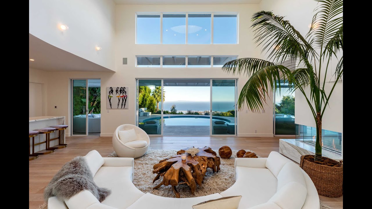 Architectural Digest Estate with breathtaking white water and coastline views overlooking Surfrider’s beach. White Ibiza-like home was just extensively re-built with Calcutta gold marble bar, floating floor to ceiling state of the art wine cellar. 3 sided calacatta gold fireplace in the living room, brand new French white oak plank floors throughout (no carpets), new Fleetwood windows/doors, fab powder room with Milano mirror & calacatta gold/Thassos marble shower. Available summer $100,000/mo.