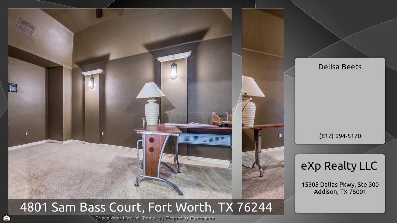 The Virtual Tour for the property at 4801 Sam Bass Court, Fort Worth, TX 76244 listed for $441,600: Other homes for sale by Delisa Beets of eXp Realty LLC: NEWLY PAINTED INTERIOR! SEE PHOTOS! Beautiful hardwood floors welcome you into spacious front office & formal dining rm showcased w plantation shutters & crown molding. French patterned ceramic tile flows from foyer into coffee bar, walk-in pantry & throughout open kitchen where you'll find granite counters, oversized island, SS appliances & lots of cabinets. 5th bedrm downstairs perfect for guests. Plenty of room upstairs w huge …