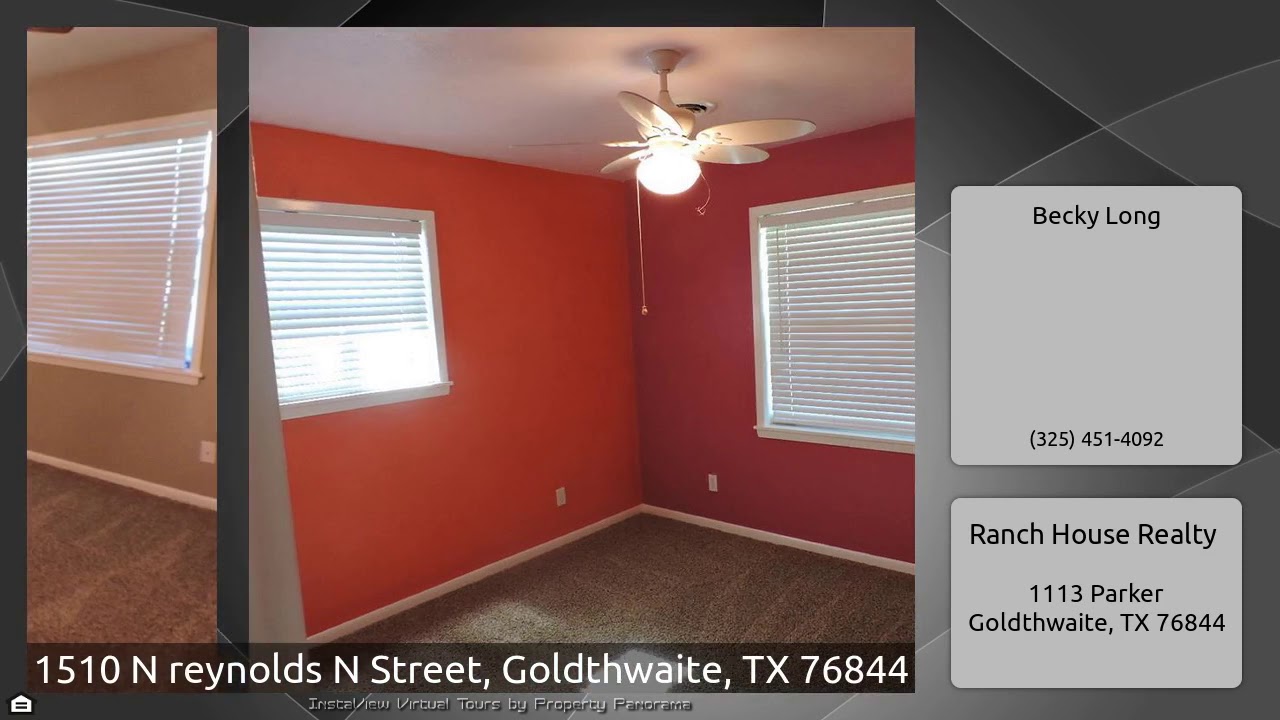 The Virtual Tour for the property at 1510 N reynolds N Street, Goldthwaite, TX 76844 listed for $224,900: Other homes for sale by Becky Long of Ranch House Realty: Large spacious well maintained brick home with over 2000 square feet. 3 to 4 bedrooms, 3 baths, living room with fireplace, office space with storage, den or game room equipped for a wood burning stove, dining area, some built ins through out home, French doors, kitchen has an eat in bar. appliances convey, quartz and marble counter tops, ceiling fans, plenty of closet storage, tile and carpet flooring, storage building, water …