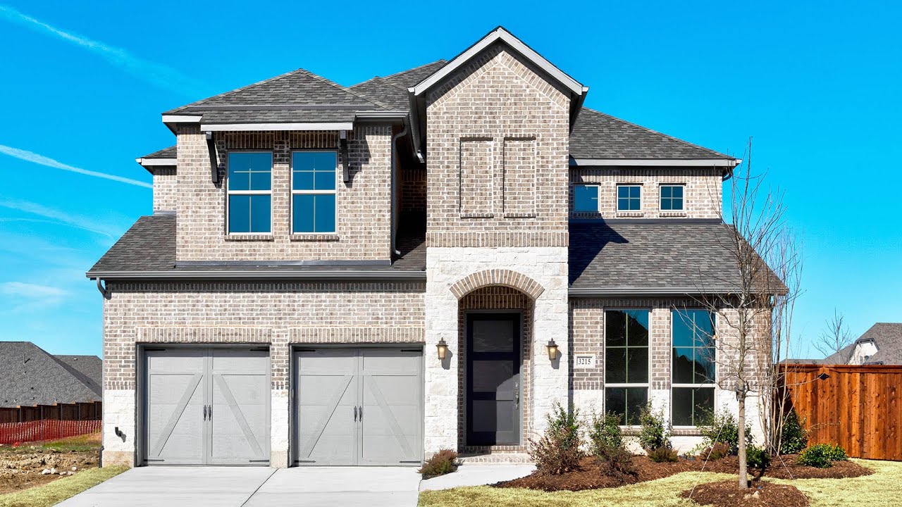 Life doesn’t get much better than the relaxation and tranquil surroundings of Mustang Lakes. This ready for move-in 2999 sq. ft. home offers four bedrooms, three full bedrooms and one half bathroom. Two-story entry. Library with French doors. Kitchen features a large pantry and a island with built-in seating space. Two-story dining area opens to two-story family room with four large windows and wood mantel fireplace. Ceramic tile floors throughout. Private master bedroom. Double doors lead to master bath with dual vanities, a large garden tub, a separate glass enclosed shower and a large walk-in closet. Private master suite with a walk-in closet and full bath. First-floor guest suite. Media room with French doors, game room and secondary bedrooms complete the second level. Covered backyard patio. Mud room leads to the three-car garage. #perryhomes #perryhomesdallas #mustanglakes