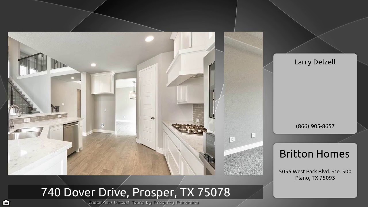The Virtual Tour for the property at 740 Dover Drive, Prosper, TX 75078 listed for $469,900: Other homes for sale by Larry Delzell of Britton Homes: PERRY HOMES NEW CONSTRUCTION READY FOR MOVE-IN! Front porch leads into a 19-foot entry. Library with French doors and formal dining room frame the extended entry. Kitchen features a curved island with a walk-in pantry. Two-story family room with a wall of windows and cast stone fireplace. Large covered patio off the family room. Master bedroom with a wall of windows. Master bath features dual vanities, garden tub, a separate glass enclosed …