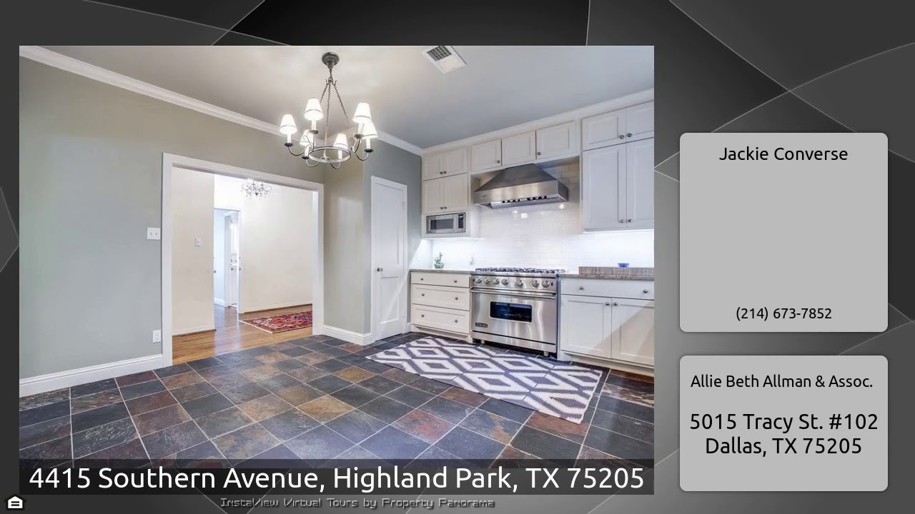 The Virtual Tour for the property at 4415 Southern Avenue, Highland Park, TX 75205 listed for $4,800: Other homes for sale by Jackie Converse of Allie Beth Allman & Assoc.: Inviting Highland Park home available for lease steps from Bradfield Elementary and Highland Park Village. Wonderful floorplan with 9' ceilings, formals including Dining room, Living room and Sunroom with French Doors. The spacious updated kitchen with stainless steel appliances includes a Viking range, refrigerator, built-in microwave, dishwasher, plus enclosed washer and dryer. Enjoy pretty days outside in the large, …