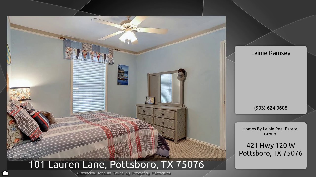 The Virtual Tour for the property at 101 Lauren Lane, Pottsboro, TX 75076 listed for $289,000: Other homes for sale by Lainie Ramsey of Homes By Lainie Real Estate Group: Gorgeous home with towering trees on a corner lot in Elm Creek West. As you enter the front door you can feel the warm ambiance that this home exudes. Formal dining room off the entry, spacious living area with wood beams on the ceilings, galley kitchen open to the dining room. Designer touches throughout the entire home. French doors that lead to the amazing backyard area – here you'll find your entertainment mecca or …