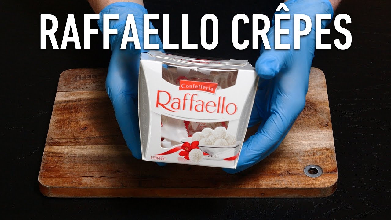 Today we’re creating sweet french crepes with Raffaello. The twist? The crepe isn’t garnished with the addition, it’s directly added into the dough! So that means, we’re putting raffaello in our crepe dough and thus create our own french sweet crepes recipe with raffaello – amazing!