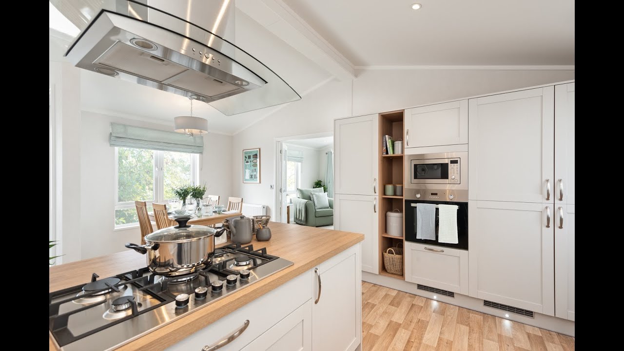 The new style cathedral windows allow for panoramic views. This park home radiates quality and class from the exterior right through to the interior. Large French doors open out from the full-width lounge while the well-equipped open-plan kitchen/dining room has its own side door to offer family accommodation at its best. This residential park home is simply stunning.