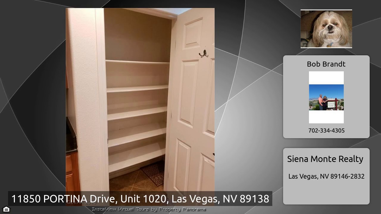 The Virtual Tour for the property at 11850 PORTINA Drive, Unit 1020, Las Vegas, NV 89138 listed for $1,900: Other homes for sale by Bob Brandt of Siena Monte Realty: Big 2 Bed Rooms and a Large Den with french doors( study or bed room ) 2 full baths, Family Room and Dining room with fireplace. so nice large storage area Great Kitchen, attached 2 car garage. Super position in community. Clean Clean Clean. rare entry to house from 2 car garage wow. Great Living EZ Style. Home at Last. You will love this home. no carpet, high quality flooring, fresh home.