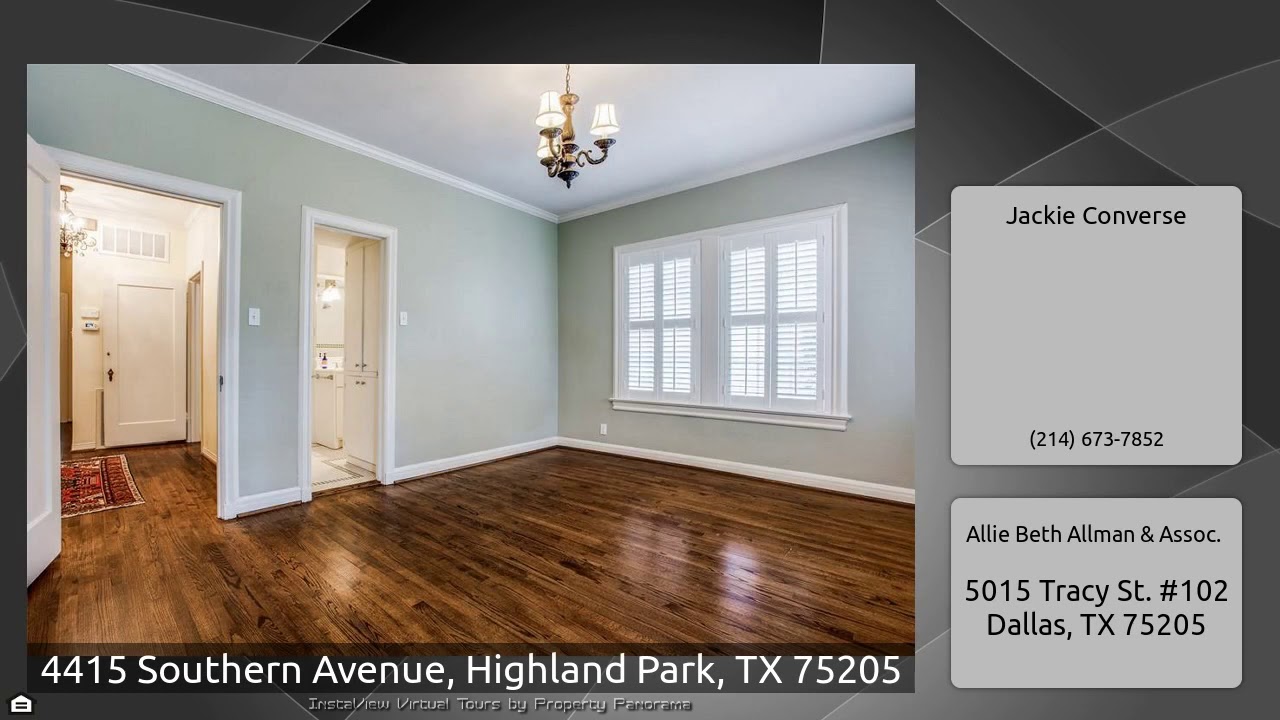 The Virtual Tour for the property at 4415 Southern Avenue, Highland Park, TX 75205 listed for $4,800: Other homes for sale by Jackie Converse of Allie Beth Allman & Assoc.: Inviting Highland Park home available for lease steps from Bradfield Elementary and Highland Park Village. Wonderful floorplan with 9' ceilings, formals including Dining room, Living room and Sunroom with French Doors. The spacious updated kitchen with stainless steel appliances includes a Viking range, refrigerator, built-in microwave, dishwasher, plus enclosed washer and dryer. Enjoy pretty days outside in the large, …