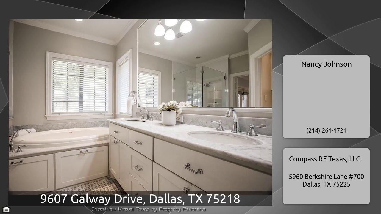 The Virtual Tour for the property at 9607 Galway Drive, Dallas, TX 75218 listed for $639,000: Other homes for sale by Nancy Johnson of Compass RE Texas, LLC.: Updated&enlarged 4 bedroom Austin Stone Ranch in Lake Park Estates, on .48 acre. Enter to 1st of 2 living areas with built-ins&gas FP.The dining room has built-ins.Kitchen has granite,breakfast bar,ss apps&separate breakfast area.Home’s 2nd living is large w 2nd FP, BI speakers & French doors to back patio.Master has vaulted ceilings,French doors to patio,2 sinks&separate shower.Secondary beds are nicely sized, and one is en …