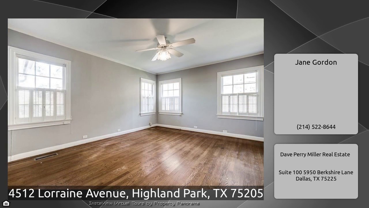 The Virtual Tour for the property at 4512 Lorraine Avenue, Highland Park, TX 75205 listed for $5,750: Other homes for sale by Jane Gordon of Dave Perry Miller Real Estate: Rare short term lease opportunity in Bradfield Elementary. This charming single family home offers 4 bedrooms, 3 baths, generous living and dining rooms as well as an island kitchen and sunny breakfast room. Master and one additional bedroom are downstairs. Two spacious bedrooms and a bath upstairs. Wonderful yard on a fabulous Highland Park French street. Immediate availability. On an 80×139 irregular lot.