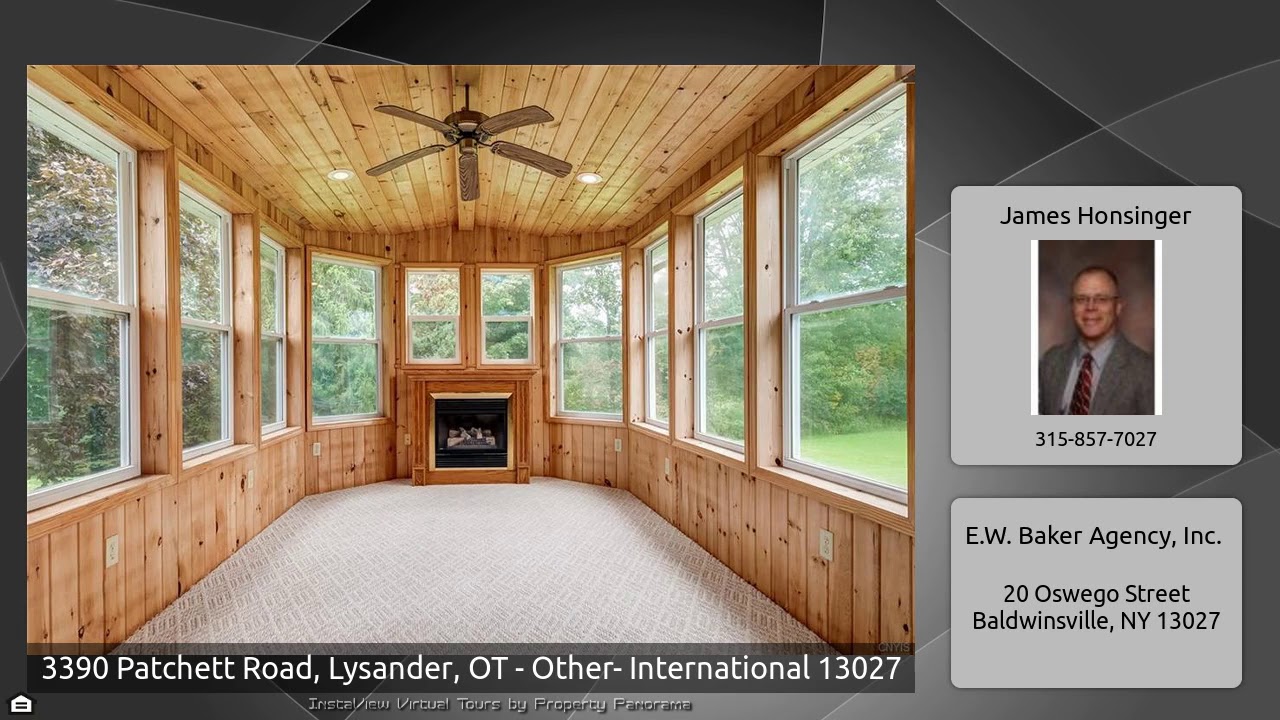 The Virtual Tour for the property at 3390 Patchett Road, Lysander, OT – Other- International 13027 listed for $324,900: Other homes for sale by James Honsinger of E.W. Baker Agency, Inc.: Just listed is this beautiful 3 bed with 2 full and 2 half baths. First time listed by the original owner. Updated kitchen with quartz countertops, beautiful hardwoods and French doors separate the living/dining areas. This home also has a beautiful heated Florida room with fireplace! A partially finished basement with 2nd gas fireplace will make you want to live here too! Close to town but a very country …