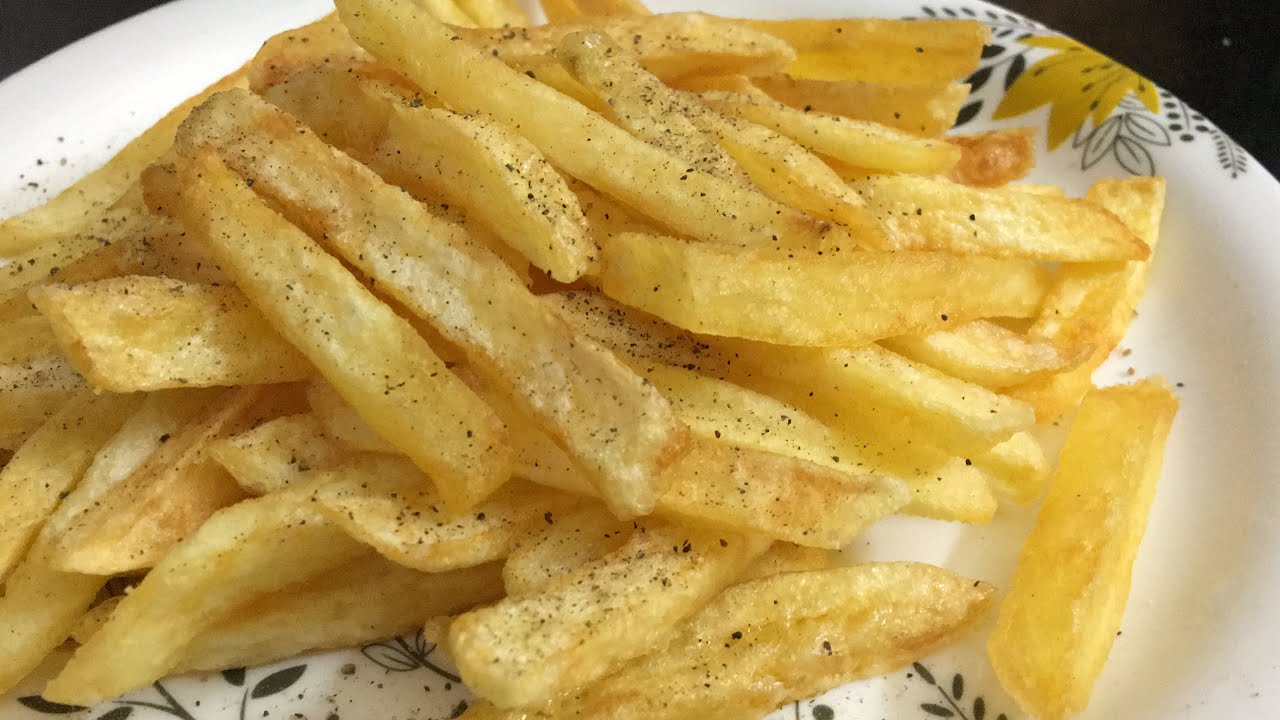 French fries are made by cutting fresh potatoes into even strips, then soaked in salty water to remove the surface starch, then thoroughly dried. Then it is deeply fired on high flame oil to give more crispiness and taste. This is simple recipe and you can try this recipe and enjoy your food!