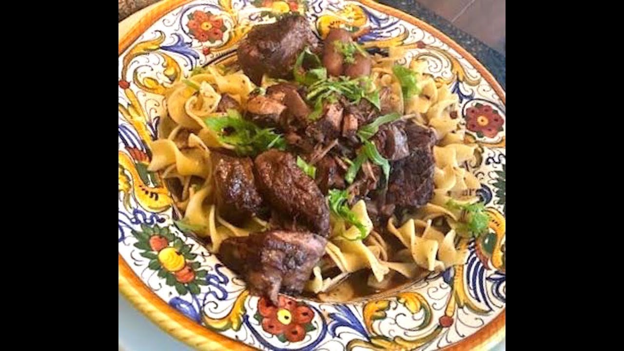 Ahhh, Boeuf Bourguignon. Nothing pairs with Cabernet Sauvignon any better than the “Julia Child” version of this French classic. The richness of the dark sauce, the tender carrots, and the succulent meat just cries for a Cabernet Sauvignon to cut thru the fat and pull up the savory nuances of this ‘beef stew’. (Referring to it as ‘stew’ is such a slight to the impact of this recipe). In her original Mastering the Art of French Cooking, the ingredients and steps are quite daunting. But Tom Dinkel of Dos Lagos Vineyards has a modern take on this, using non-gluten ALMOND FLOUR and some practical steps to help make this relatively complex dish a bit easier. The 2008 Dos Lagos Vineyards Cabernet Sauvignon, Atlas Peak AVA, Robert Foley winemaker is the PERFECT wine to pair with Boeuf Bourguignon, a la Tom.