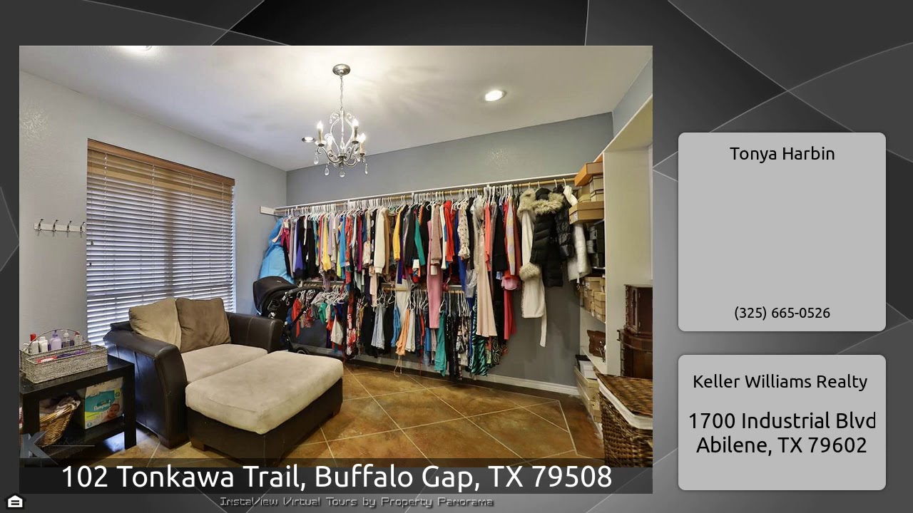 The Virtual Tour for the property at 102 Tonkawa Trail, Buffalo Gap, TX 79508 listed for $325,000: Other homes for sale by Tonya Harbin of Keller Williams Realty: You'll love this private 2 story ranch. This home is the perfect floor plan for any family with a first floor master and a bonus room above the garage. Open concept living, kitchen, & dining. Home features stone fireplace, granite counters, stainless appliances, multiple staircases. Master suite is a true retreat with french doors to bathroom, jetted tub, separate shower with body sprayers, dressing room, and heated floors! Enjoy …