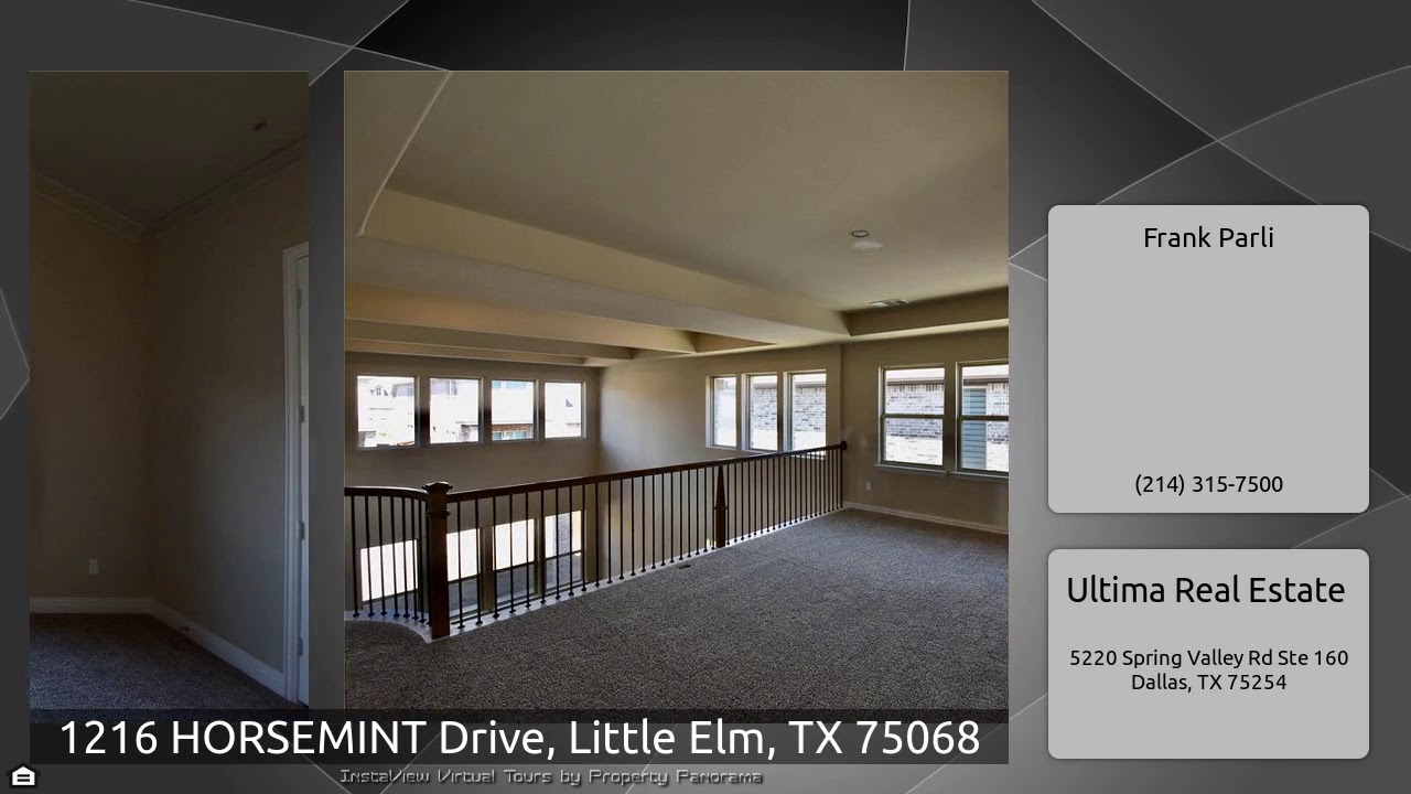 The Virtual Tour for the property at 1216 HORSEMINT Drive, Little Elm, TX 75068 listed for $429,000: Other homes for sale by Frank Parli of Ultima Real Estate: BRAND NEW DESIGN IN FRISCO HILLS SOUTH FACING! FRISCO SCHOOLS!! Beautiful Old World design with stone accents.Custom front door leads to 2 story foyer. Engineered Hardwood ENTRY, STUDY, F. DINING, FAMILY! Study w French Doors, Impressive 2story F. Dining, Guest BR down, nice Kitchen with custom cabinetry and granite tops. Large 2 story Family, Great Master down with 12' ceiling and HUGE closet. 3 BR's, Game AND Media up. WHIRLPOOL SS …